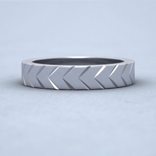 Chevron Pattern 14ct White Gold 4mm Wedding Ring