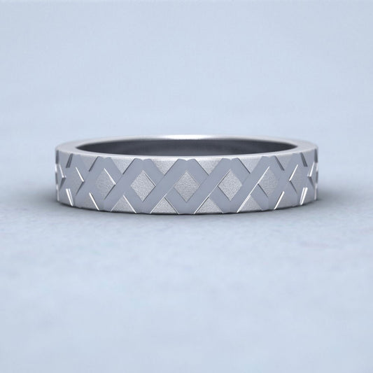 Diagonal Cross Pattern 18ct White Gold 4mm Wedding Ring