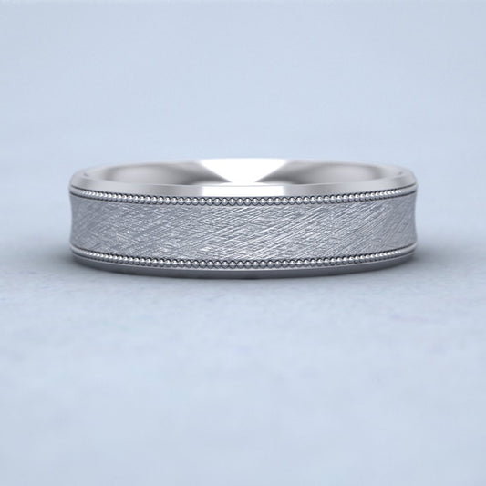 Hatched Centre And Millgrain Patterned 9ct White Gold 5mm Wedding Ring