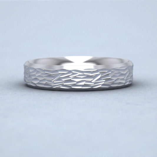 Bevelled Edge And Hammered Centre 14ct White Gold 5mm Wedding Ring
