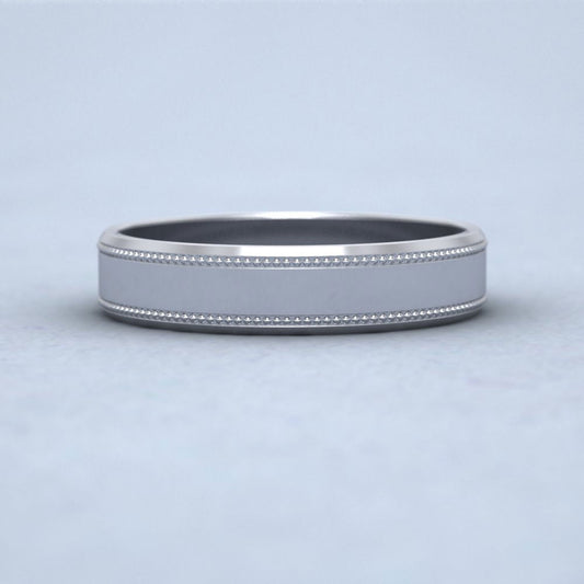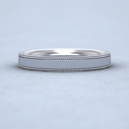 Bevelled Edge And Millgrain Pattern 18ct White Gold 4mm Flat Wedding Ring