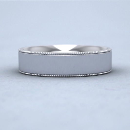 Millgrain Edge 18ct White Gold 5mm Flat Comfort Fit Wedding Ring G