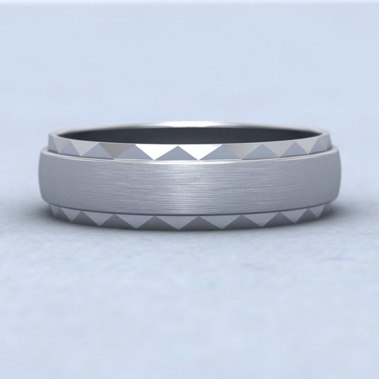 Flat Edge Facetted Cut Patterned And Matt Finish 18ct White Gold 6mm Wedding Ring