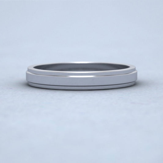 Stepped Edge Pattern Flat 14ct White Gold 3mm Flat Wedding Ring