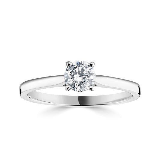 18ct White Gold Solitaire Four Claw Set Diamond Engagement Ring