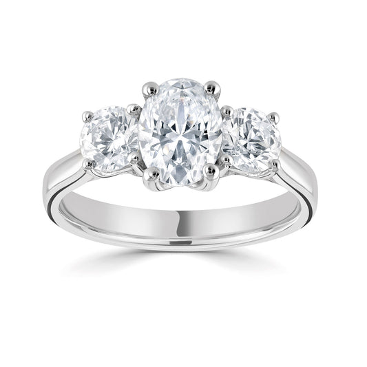 18ct White Gold Trilogy Oval Centre Diamond Ring