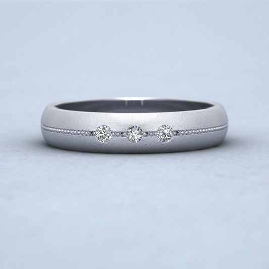 Three Diamond And Centre Millgrain Pattern 9ct White Gold 4mm Wedding Ring