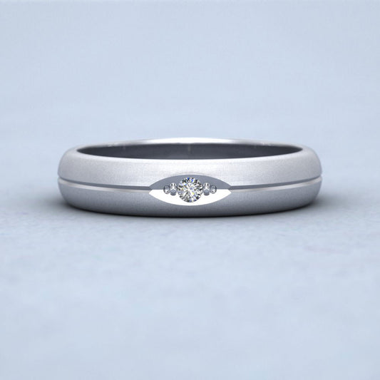 Diamond Set And Centre Line Pattern 14ct White Gold 4mm Wedding Ring