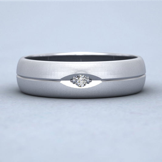 Diamond Set And Centre Line Pattern 18ct White Gold 6mm Wedding Ring
