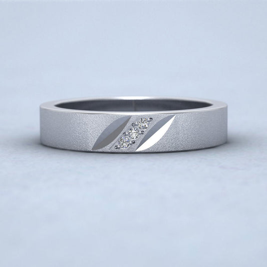 Diagonal Cut And Diamond Set 14ct White Gold 4mm Flat Wedding Ring