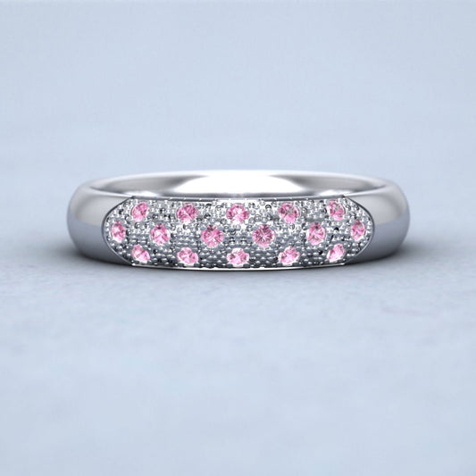 Pave Set Pink Sapphire 14ct White Gold 4mm Wedding Ring