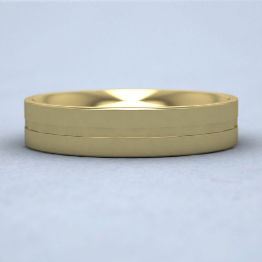 Flat Facetted Groove 9ct Yellow Gold 5mm Wedding Ring