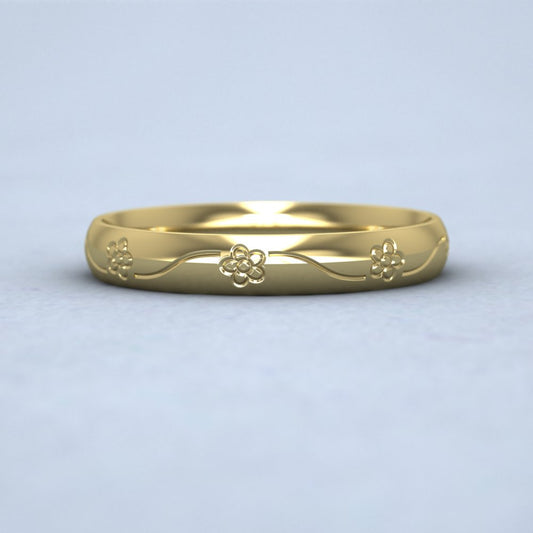 Engraved Flower 9ct Yellow Gold 3mm Wedding Ring
