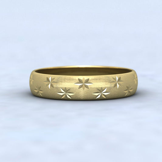 Star Patterned 14ct Yellow Gold 4mm Wedding Ring