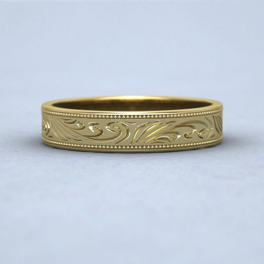 Leaf Cut Pattern 9ct Yellow Gold 4mm Wedding Ring