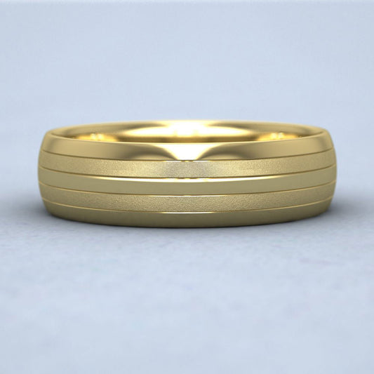 Four Line Pattern With Shiny And Matt Finish 9ct Yellow Gold 6mm Wedding Ring