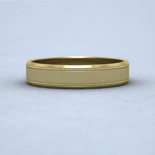 Bevelled Edge And Millgrain Pattern 9ct Yellow Gold 4mm Flat Wedding Ring