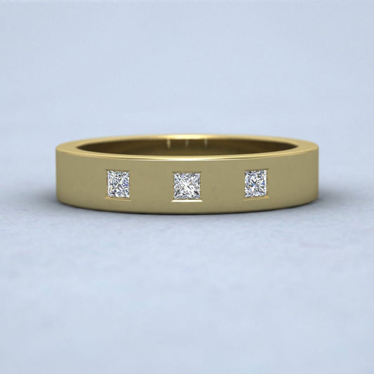 Three Stone Princess Cut Diamond Set 9ct Yellow Gold 4mm Wedding Ring