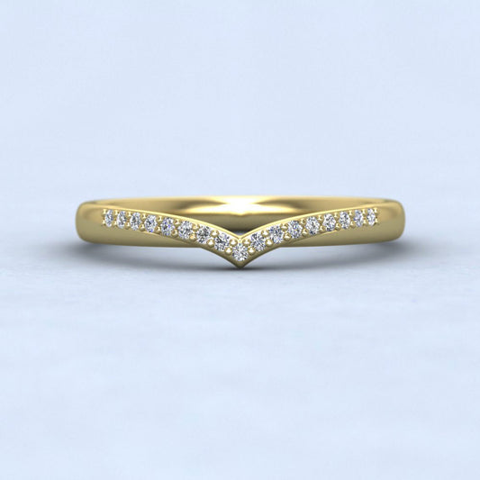 Crossover V Shape Round Diamond Set Wedding Ring In 18ct Yellow Gold 2.25mm Wide