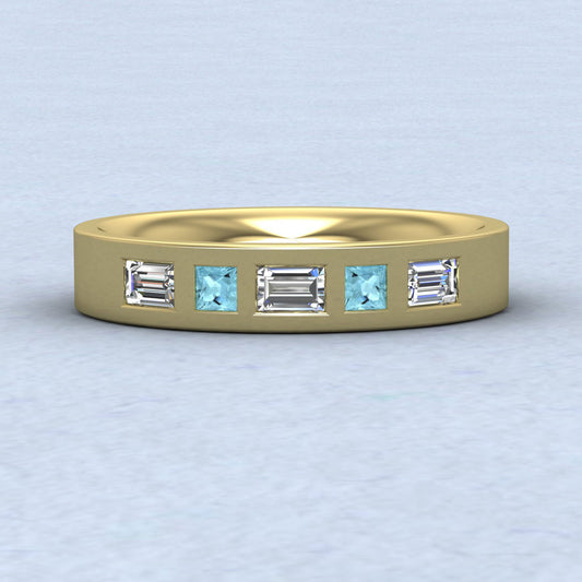 Aquamarine And Diamond Set (0.4ct Vs, F/G) 18ct Yellow Gold 4mm Wedding Ring