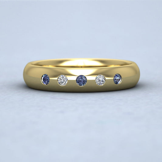 Blue Sapphire And Diamond Flush Set 14ct Yellow Gold 4mm Wedding Ring