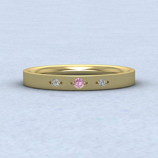 Three Diamond And Pink Sapphire Set 14ct Yellow Gold 2.5mm Wedding Ring