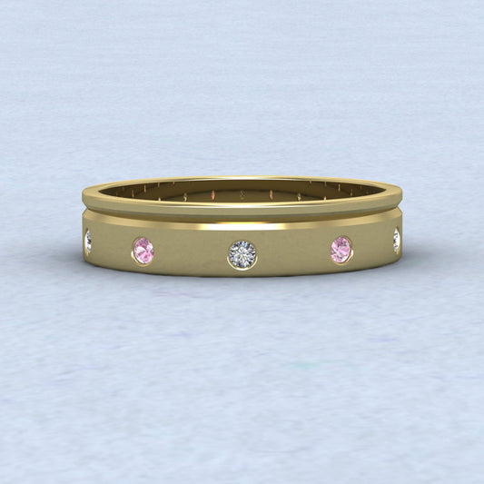 Diamond And Pink Sapphire Set 18ct Yellow Gold 4mm Wedding Ring