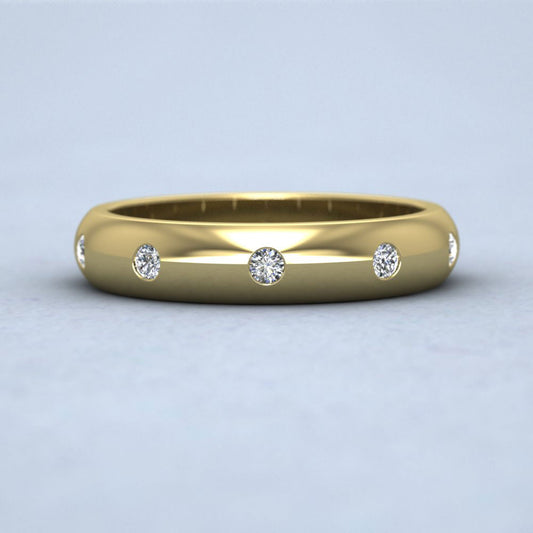 Ten Diamond Set Flush 14ct Yellow Gold 4mm Wedding Ring
