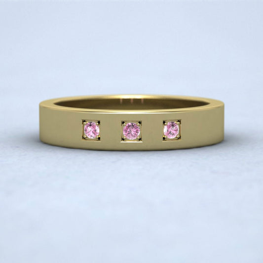 Three Pink Sapphires With Square Setting 9ct Yellow Gold 4mm Wedding Ring