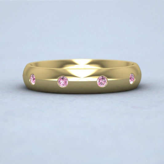 Ten Pink Sapphire Set Flush 9ct Yellow Gold 4mm Wedding Ring