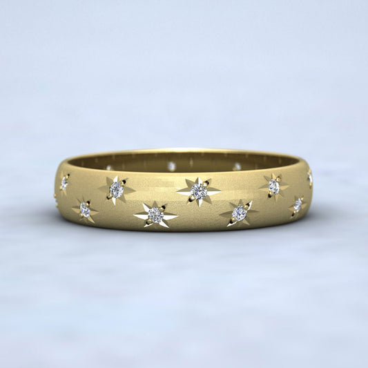 Star And Diamond Set 18ct Yellow Gold 4mm Wedding Ring