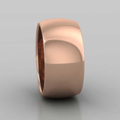 Wide 10mm super heavy weight 18ct rose gold wedding ring. This wedding band has a rounded outside profile with a flat inside and is available in sizes D-Z+12.