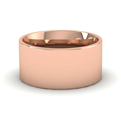 Wide 10mm extra heavy weight 18ct rose gold wedding ring. This wedding band has a flat outside profile with a rounded court shape inside for a softer and more comfortable feeling when worn. Available in sizes D-Z+6.