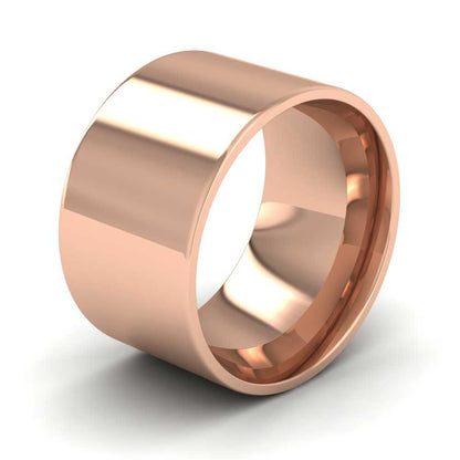 Wide 12mm extra heavy weight 18ct rose gold wedding ring. This wedding band has a flat outside profile with a rounded court shape inside for a softer and more comfortable feeling when worn. Available in sizes D-Z+6.