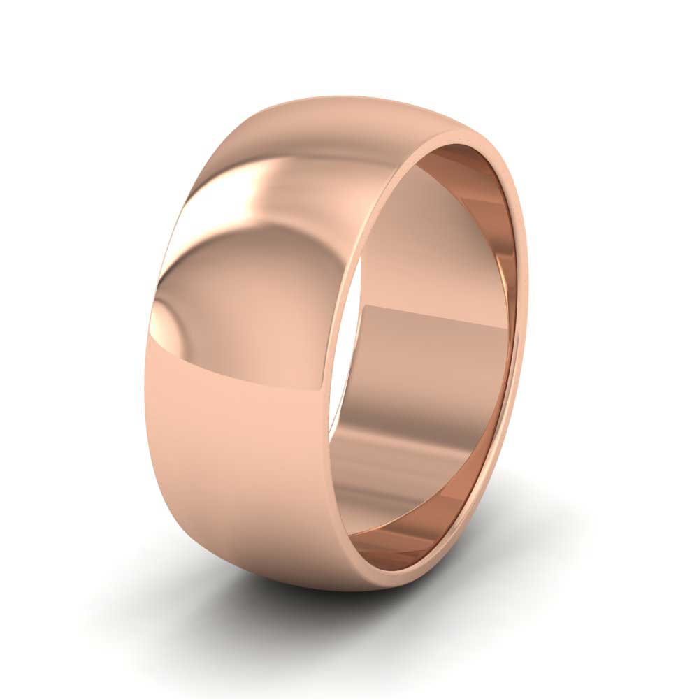 8mm wide extra heavy weight 18ct rose gold wedding ring. This wedding band has a rounded outside profile with a flat inside and is available in sizes D-Z+6.