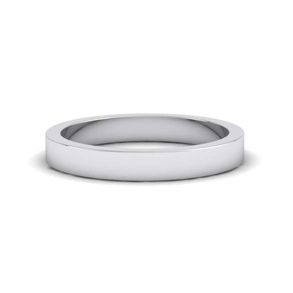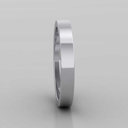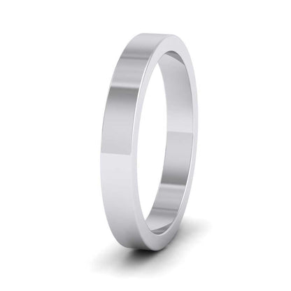 3mm wide super heavy weight 18ct white gold wedding ring. This wedding band has a flat outside profile with a flat inside and is available in sizes D-Z+12.