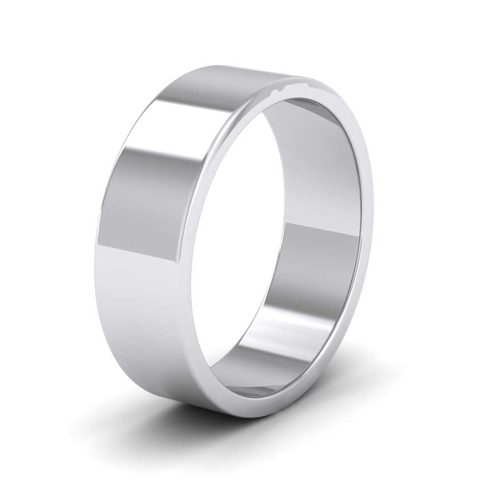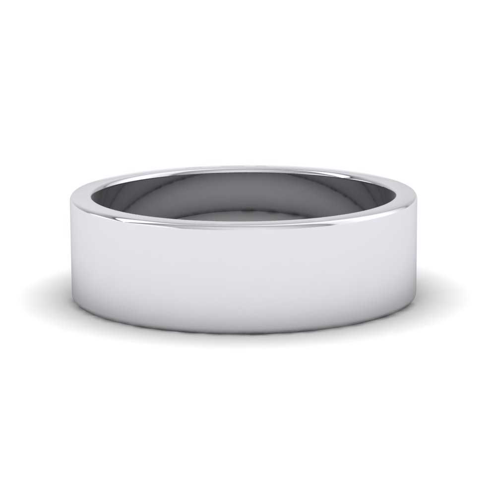 6mm wide extra heavy weight 18ct white gold wedding ring. This wedding band has a flat outside profile with a flat inside and is available in sizes D-Z+6.