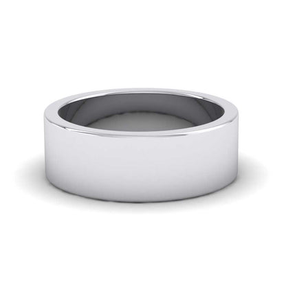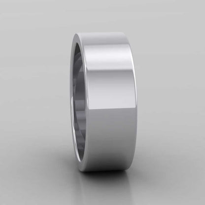 7mm wide super heavy weight 18ct white gold wedding ring. This wedding band has a flat outside profile with a flat inside and is available in sizes D-Z+12.