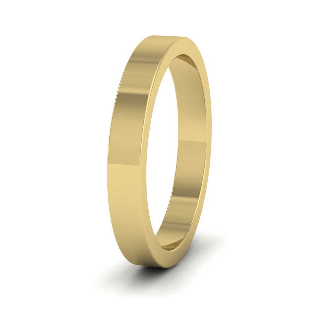 3mm wide super heavy weight 18ct yellow gold wedding ring. This wedding band has a flat outside profile with a flat inside and is available in sizes D-Z+12.