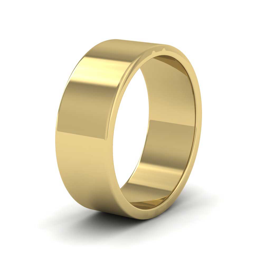 7mm wide extra heavy weight 18ct yellow gold wedding ring. This wedding band has a flat outside profile with a flat inside and is available in sizes D-Z+6.