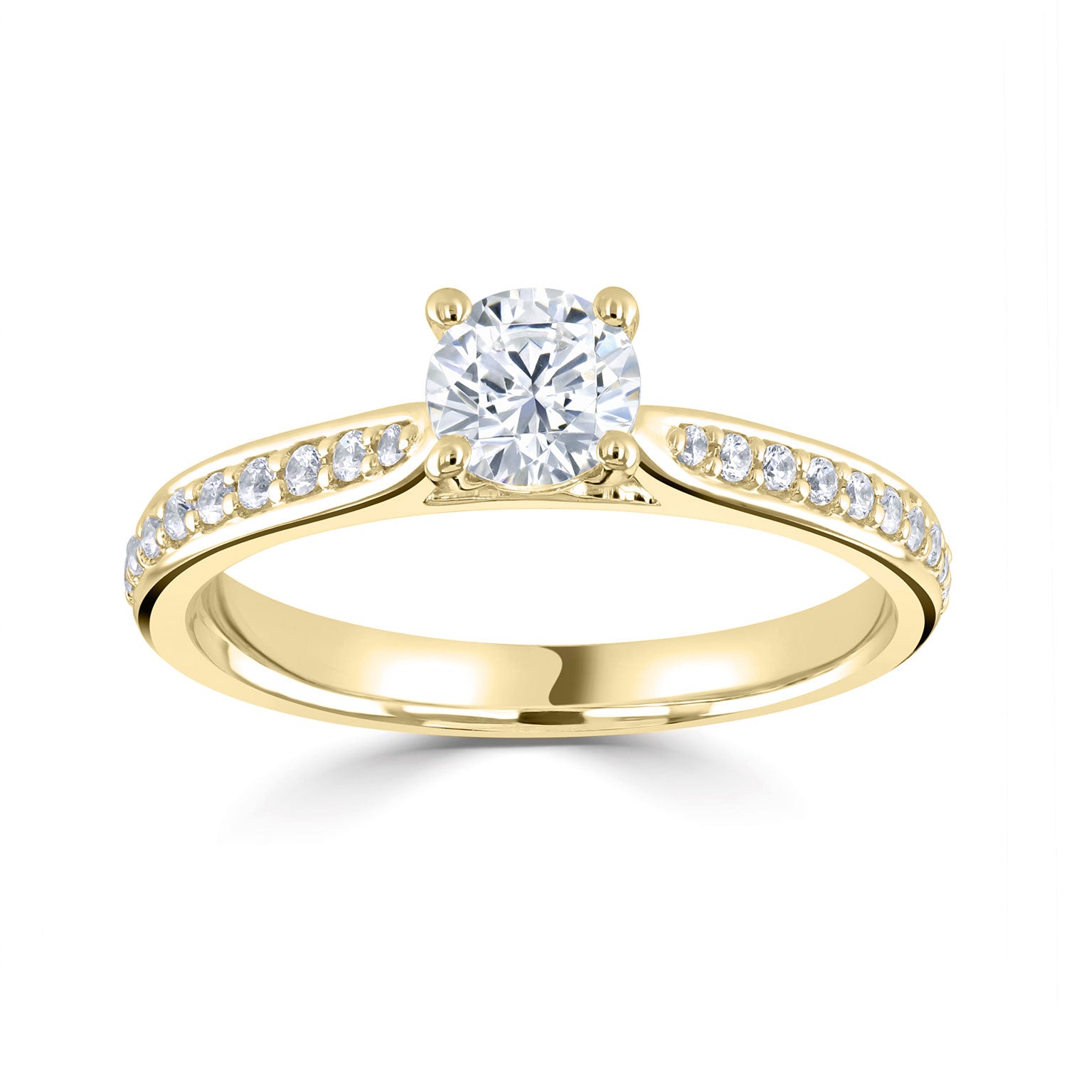 18ct Yellow Gold Diamond Ring With Pave Set Rising Shoulders