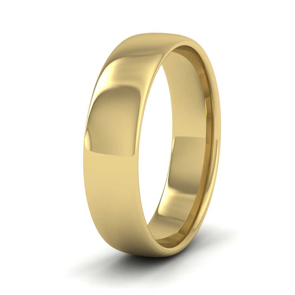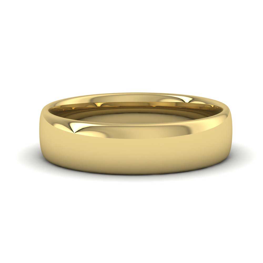 5mm wide classic weight 22ct yellow gold wedding ring. This wedding band has a shallow curved outside profile softened rounded edges with a rounded shape inside for a softer and more comfortable feeling when worn. Sizes D-Z+3.