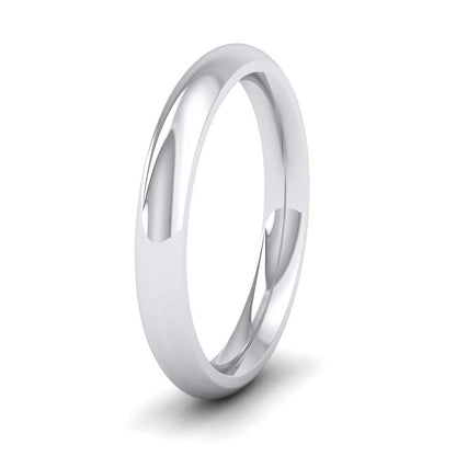 3mm wide super heavy weight 950 platinum wedding ring. This wedding band has a rounded outside profile with a rounded court shape inside for a softer and more comfortable feeling when worn. Available in sizes D - Z+12.