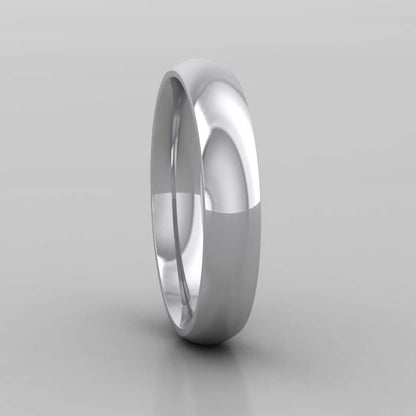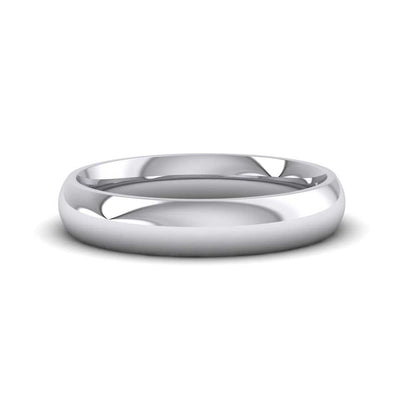 4mm wide extra heavy weight 950 platinum wedding ring. This wedding band has a rounded outside profile with a rounded court shape inside for a softer and more comfortable feeling when worn. Available in sizes D - Z+6.