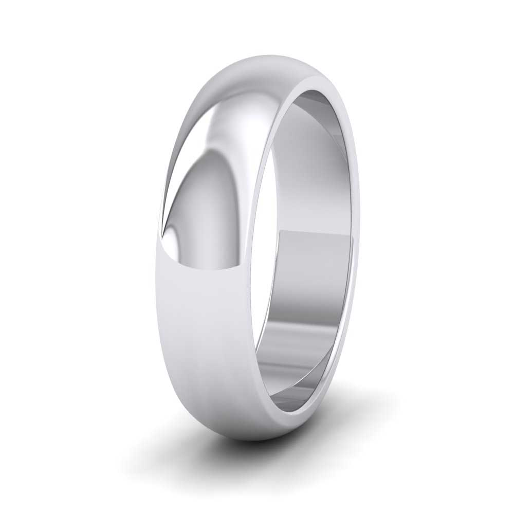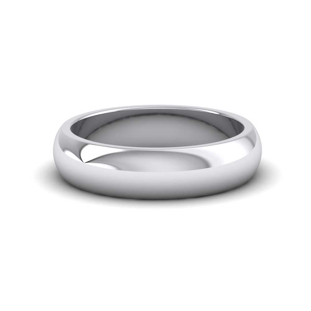5mm wide super heavy weight 950 platinum wedding ring. This wedding band has a rounded outside profile with a flat inside and is available in sizes D - Z+12.