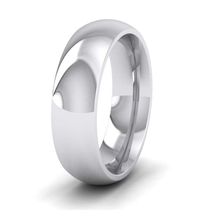 6mm wide super heavy weight 950 platinum wedding ring. This wedding band has a rounded outside profile with a rounded court shape inside for a softer and more comfortable feeling when worn. Available in sizes D - Z+12.