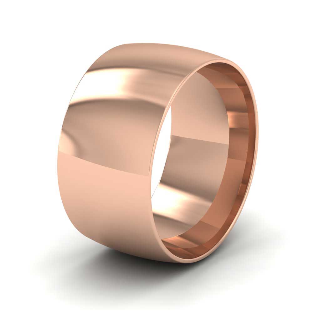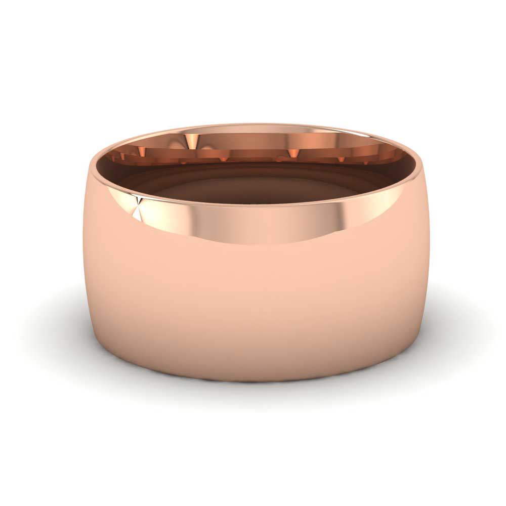 Wide 10mm classic weight 9ct rose gold wedding ring. This wedding band has a rounded outside profile with a rounded court shape inside for a softer and more comfortable feeling when worn. Available in sizes D-Z+3.