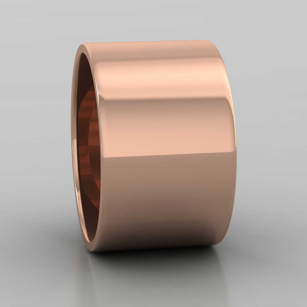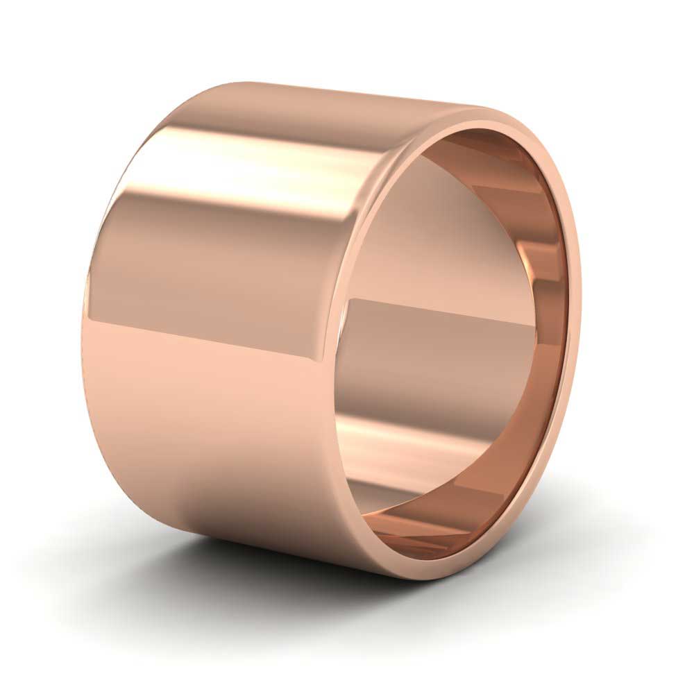 Wide 12mm classic weight 9ct rose gold wedding ring. This wedding band has a flat outside profile with a flat inside and is available in sizes D-Z+3.
