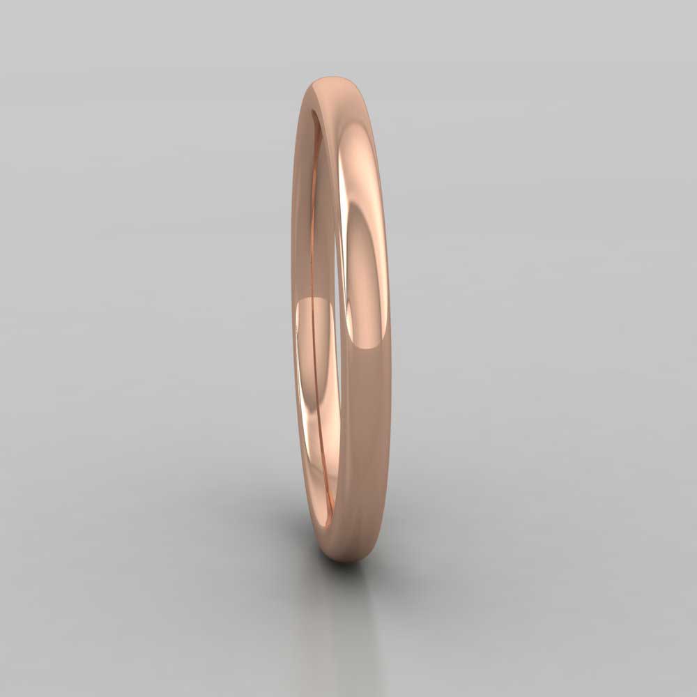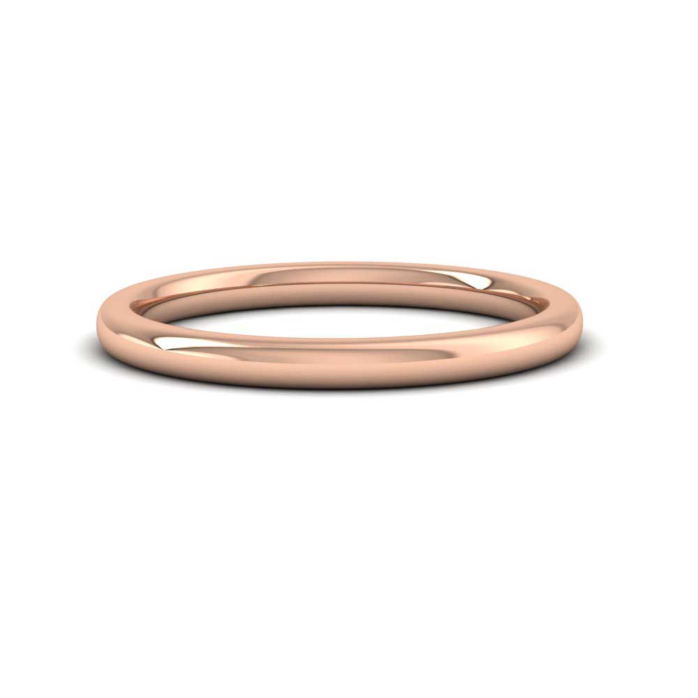 Narrow 2mm wide extra heavy weight 9ct rose gold wedding ring. This wedding band has a shallow curved outside profile softened rounded edges with a rounded shape inside for a softer and more comfortable feeling when worn. Sizes D-Z+6.
