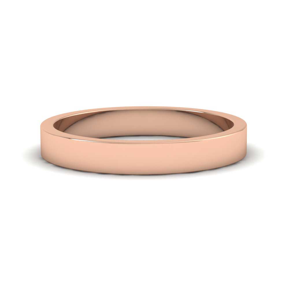 3mm wide extra heavy weight 9ct rose gold wedding ring. This wedding band has a flat outside profile with a flat inside and is available in sizes D-Z+6.